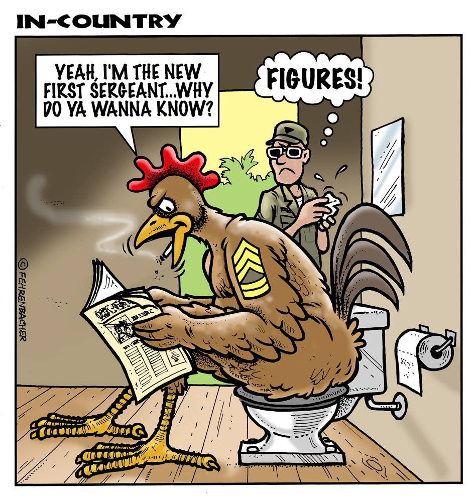 Phil enlisted in the Army in 1965 where he served for years in Vietnam. He became a graphic designer and has worked for the state of Oregon for 26 years. He retired in 2003 and started the Cartoon "In-Country". The cartoons reflect his experiences during his tour of duty in South Vietnam.